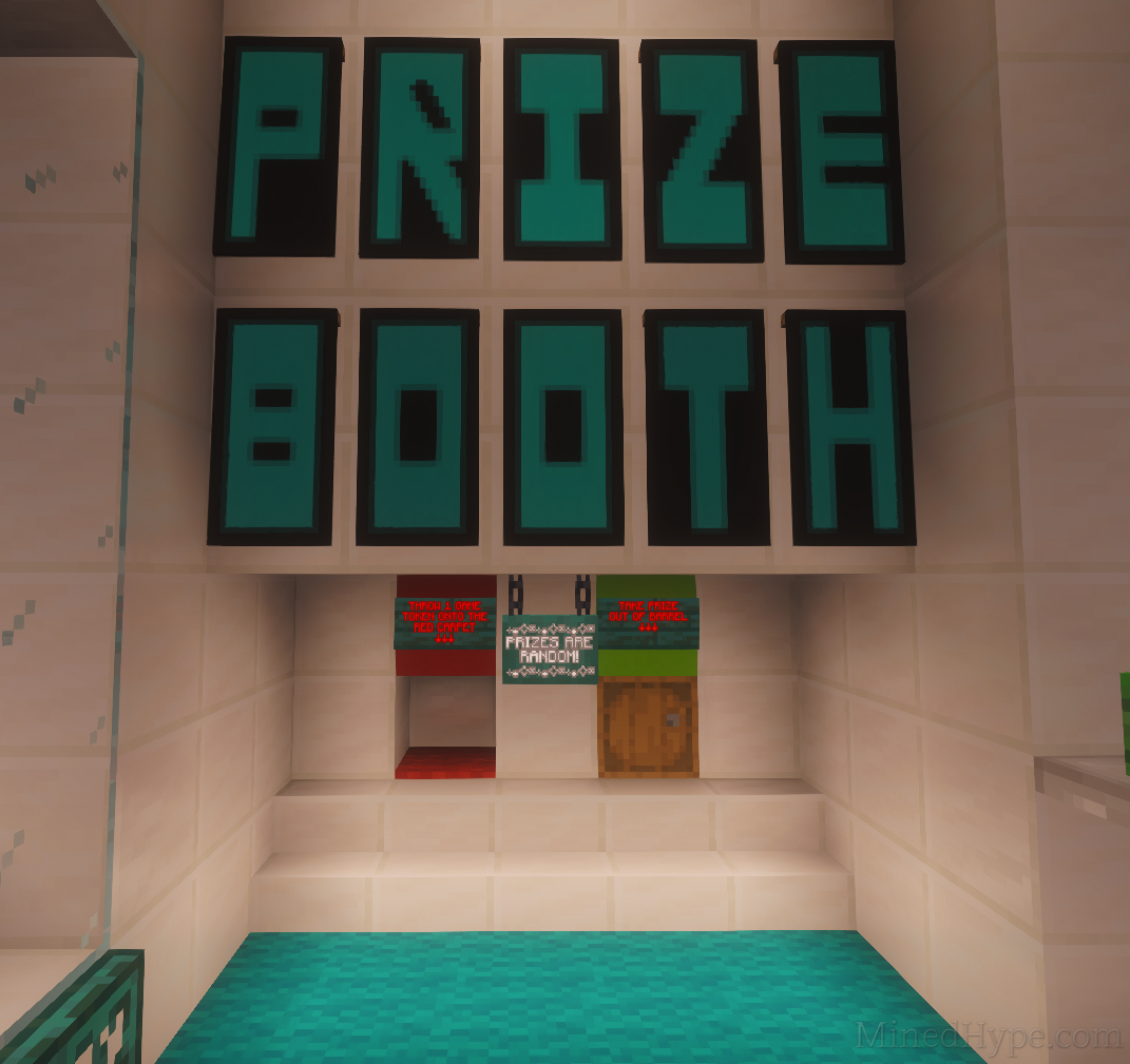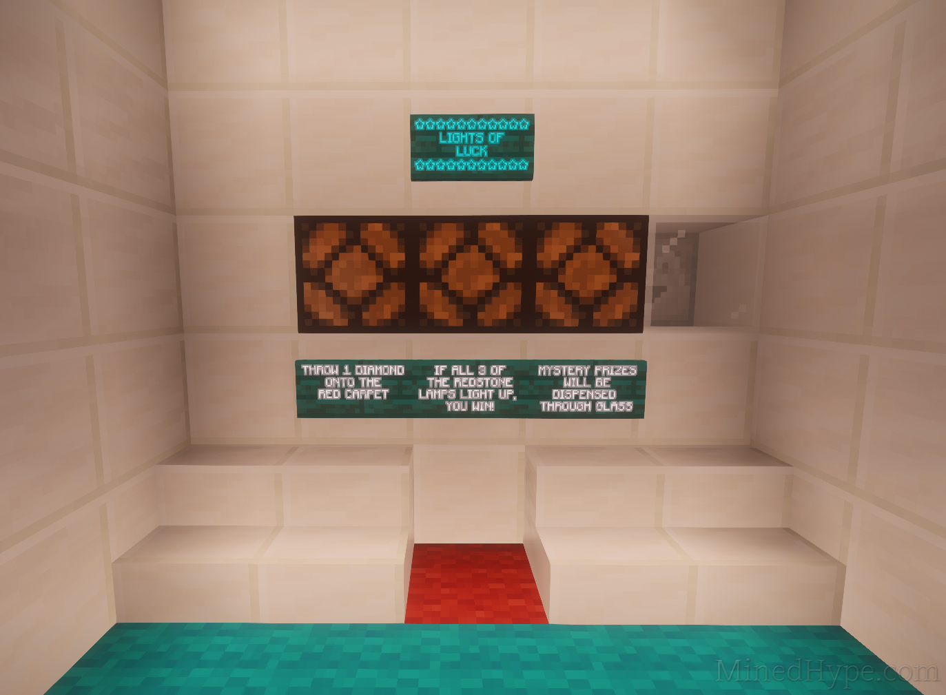 • If you win, the mystery prize will be dispensed through the white glass located to the right of the redstone lamps.